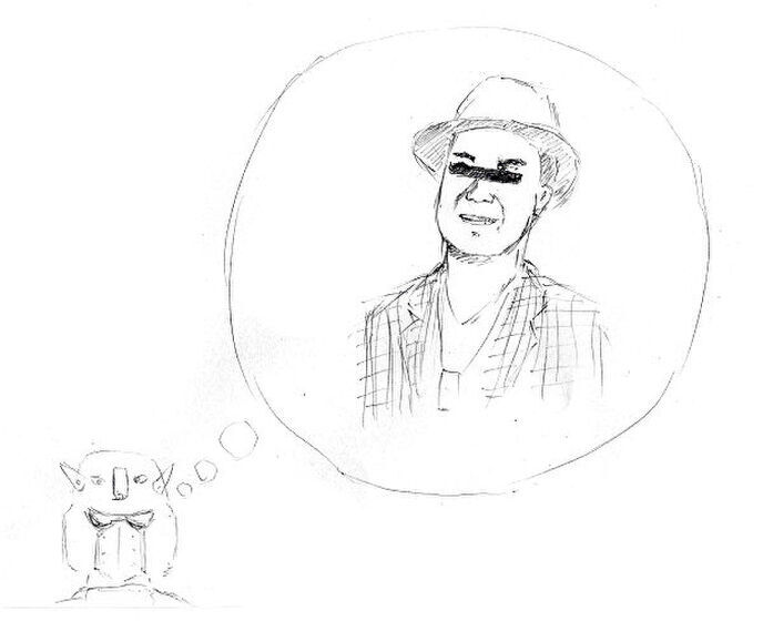 レベッカの言葉で健太郎の脳裏に黄色いスーツを来た腹巻の男性の顔が浮かぶ。