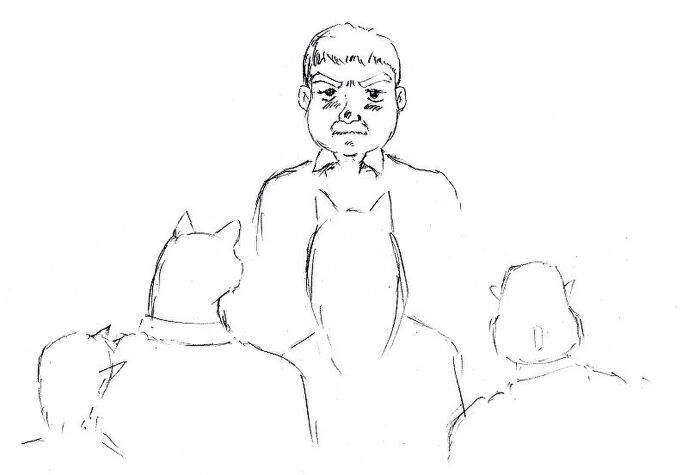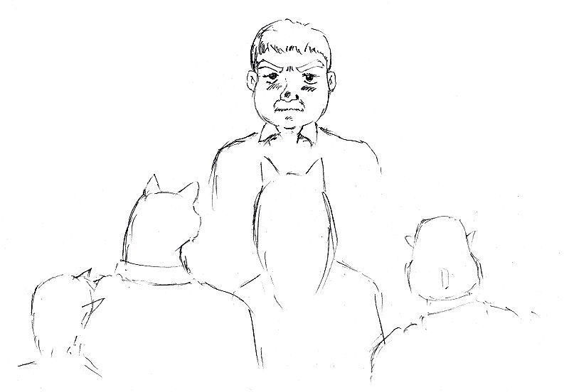 宿の一階は酒場になっておりその酒場の客の一人、昼間から酒を飲みしたたかに酔っぱらっていた口髭の男が、健太郎達に歩み寄り絡み始めた。