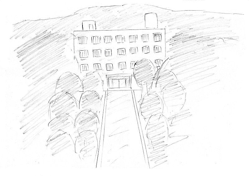 誰ともなく全員、海から視線を外し、木々の間の通路の先に見える建物へと瞳を向けた。