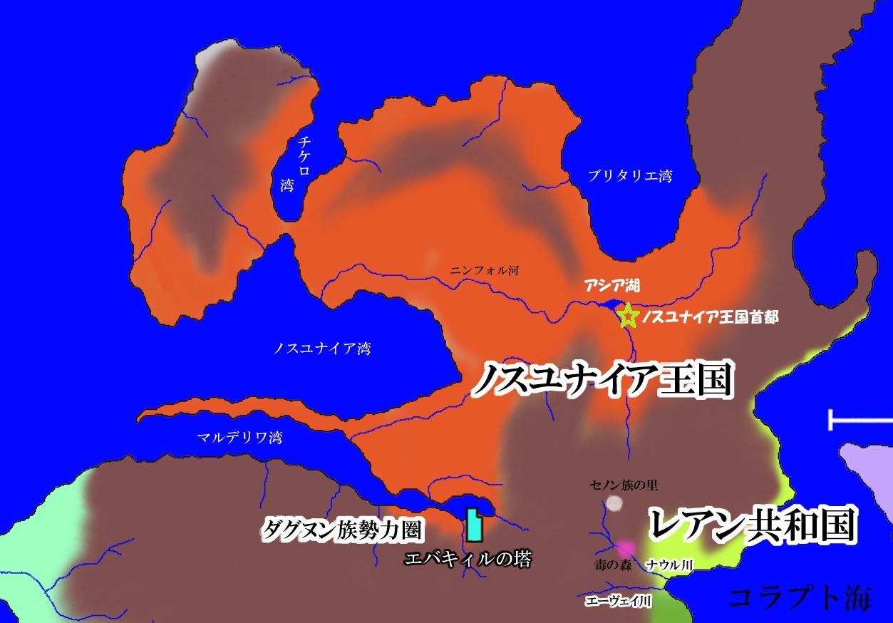 レアン共和国を脅迫したデヴォール帝国とは大陸の北辺一帯を支配する軍事大国の事で、ノスユナイア王国から見るとレノア山脈の東側にあるコラプト海と呼ばれる狭い海を隔てた東側に位置しています。連合の一件でレアンを巡っての諍いがあった為にデヴォール帝国とノスユナイア王国は現在でもあまり友好的関係にありません。とはいえ150年ほど前に始まったレアン共和国の通商改革によって間接的につながりを持っています。