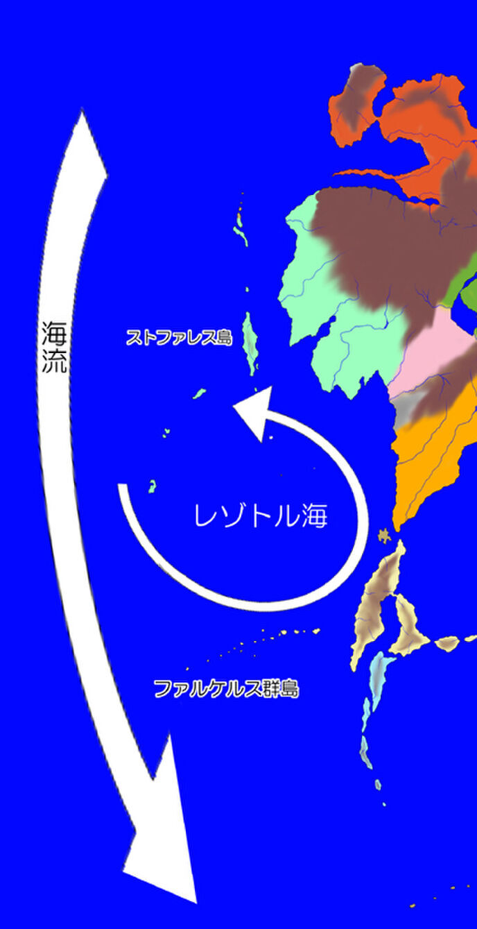 立体的な影をつけたいくつもの白いちぎれ雲が青空に浮かび、進行方向に長く伸びているストファレス島が左手に、そしてその遥か右手にはトスアレナ教皇国本土が見え、それらが視界いっぱいに広がっては後方へとゆっくり流れているのです。そして前方に現れた船を巧みな舵さばきでユルッと避けると信じられない速度で後背へと流れて行く様はさながら鳥の滑空です。