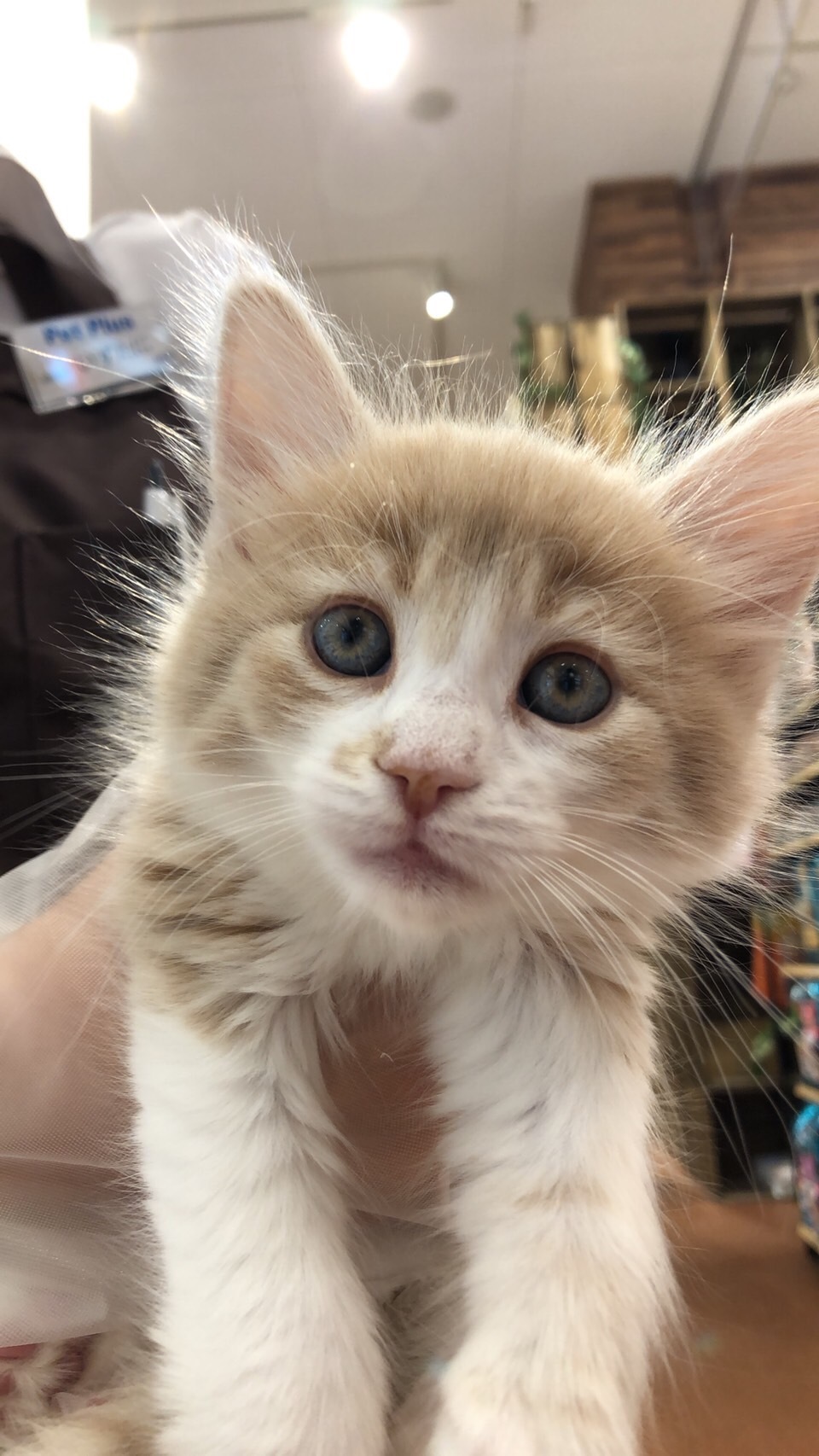 元々メインクーンに興味は持っていたのだが、ペットショップで見たのは初めてだったので、妻と一緒に抱かせてもらった。もう、めちゃくちゃ可愛かった。
