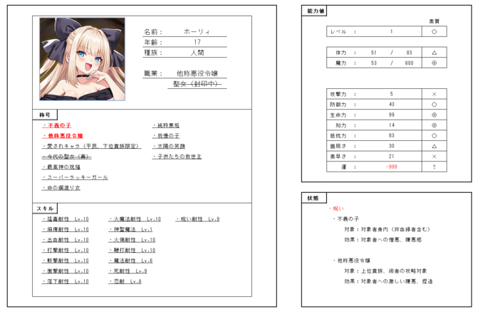 ステータスにでかでかと載っていますけど、私が知ってる呪いの詳細を語りますね!