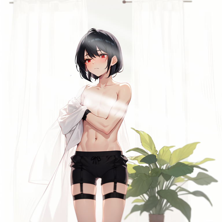 「後で、ぶかぶかな白いシャツを着て…ガーターつけたまま生足だして、好きなだけ鑑賞させてやるからいいか?」と、甘い誘いの言葉を囁きました。