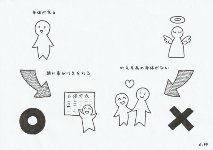 「ただ、願い事を叶えるにしても、それは己の身があってこそ。仮に受験合格、結婚良縁なんかを願うにしても、その身が無ければ叶わないでしょ?だから願いを叶える為に、神様はその身をまず護るだけの力や健康、安全を授けてくれているの。」