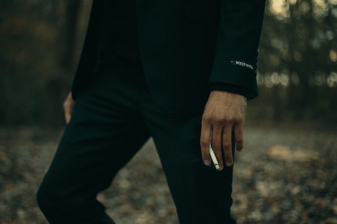長い指が、安っぽい喪服のポケットから煙草とマッチを取り出す。