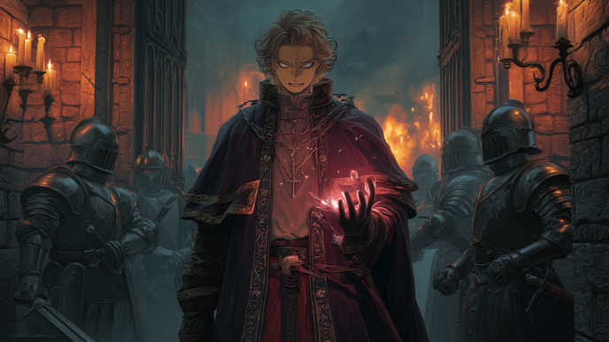 (この男…あまりにも愚かだわ…。でも、それ故に危険でもある。マルシャン殿を一刻も早くこの王都から無事に脱出させるには、何としてもこの男をこの場に繋ぎ止めておかなければならない…。それにしても…今宵の空気…なぜかしら、胸騒ぎがするわ。何か…何か見えない糸に操られているような、漠然とした不安を感じる…。まさかとは思うけれど…)
