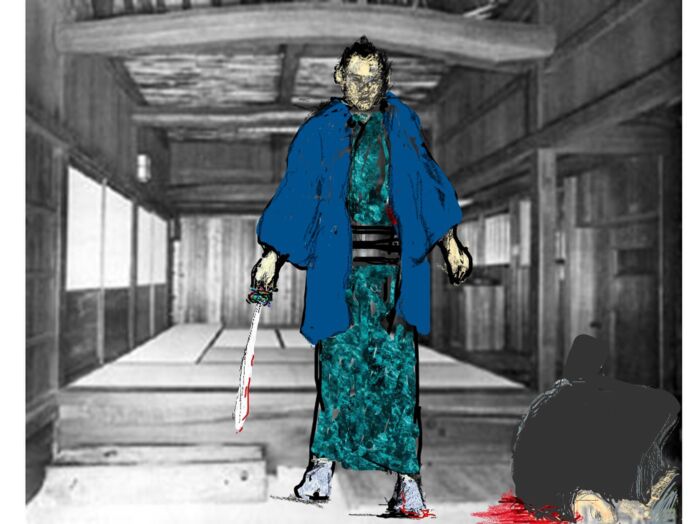 一瞬の間をとり、家の周りをうかがってから悲鳴の方に走り出す両断斎が途中で足を止めた。その視線の先に井戸の釣瓶の縄に首を吊った男がみえる。次々に長屋のなかから休みの同心たちが集まった。そのなかに人相書きと似顔絵を持った者がいて首を吊った男と見比べている。