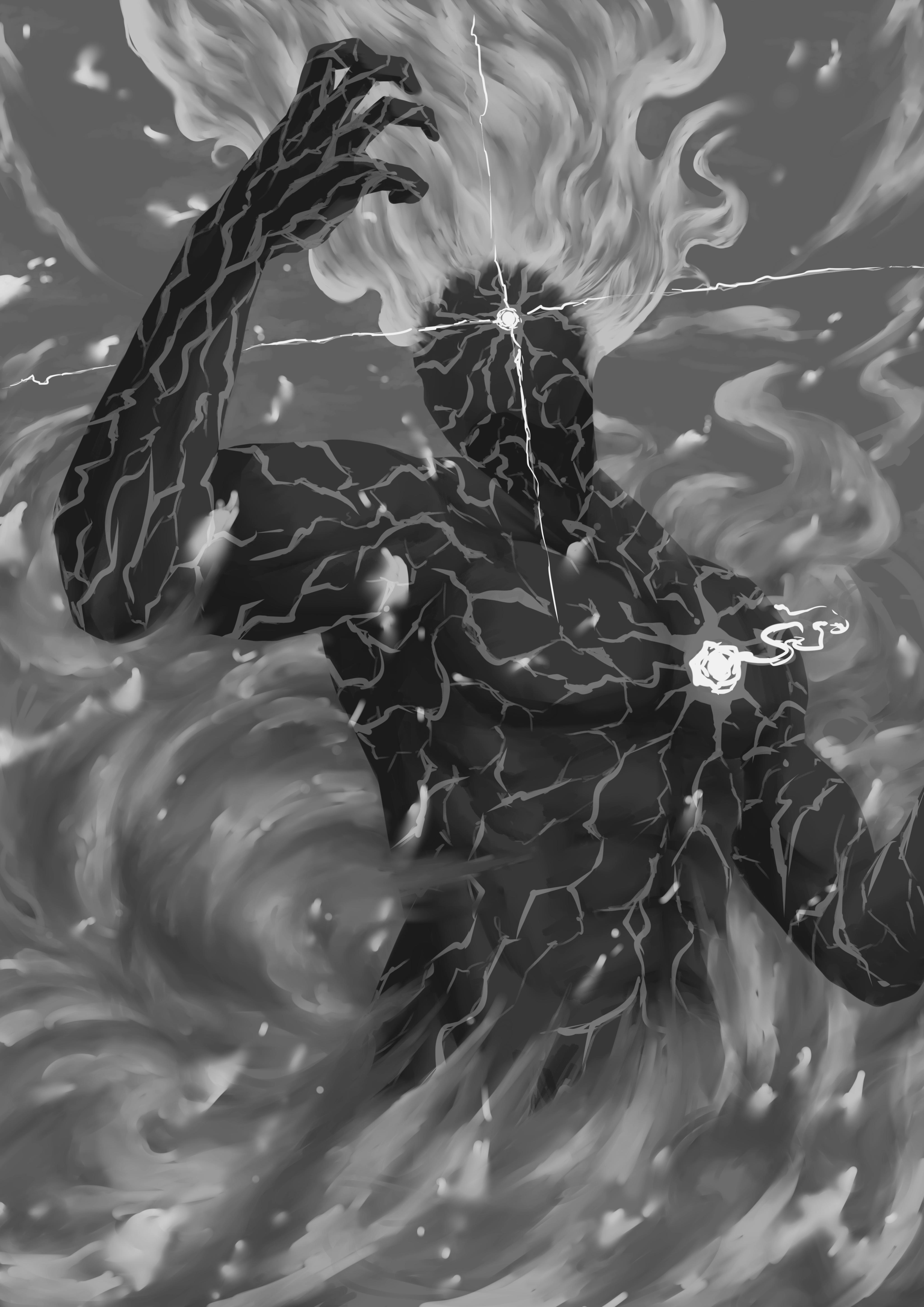 シモンの火拳が目にも止まらぬ速さでセノに繰り出され、それをセノが迎撃する。