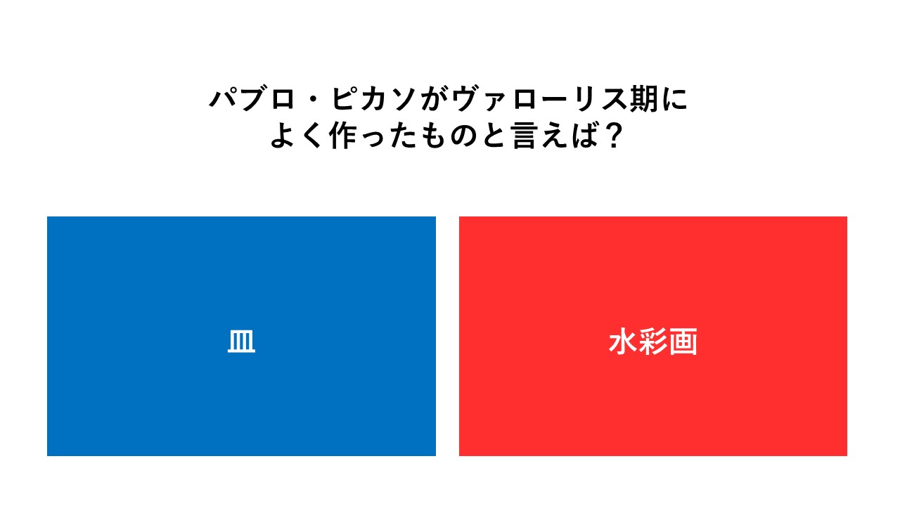 問題文は、「パブロ・ピカソがヴァローリス期によく作ったものと言えば?」。