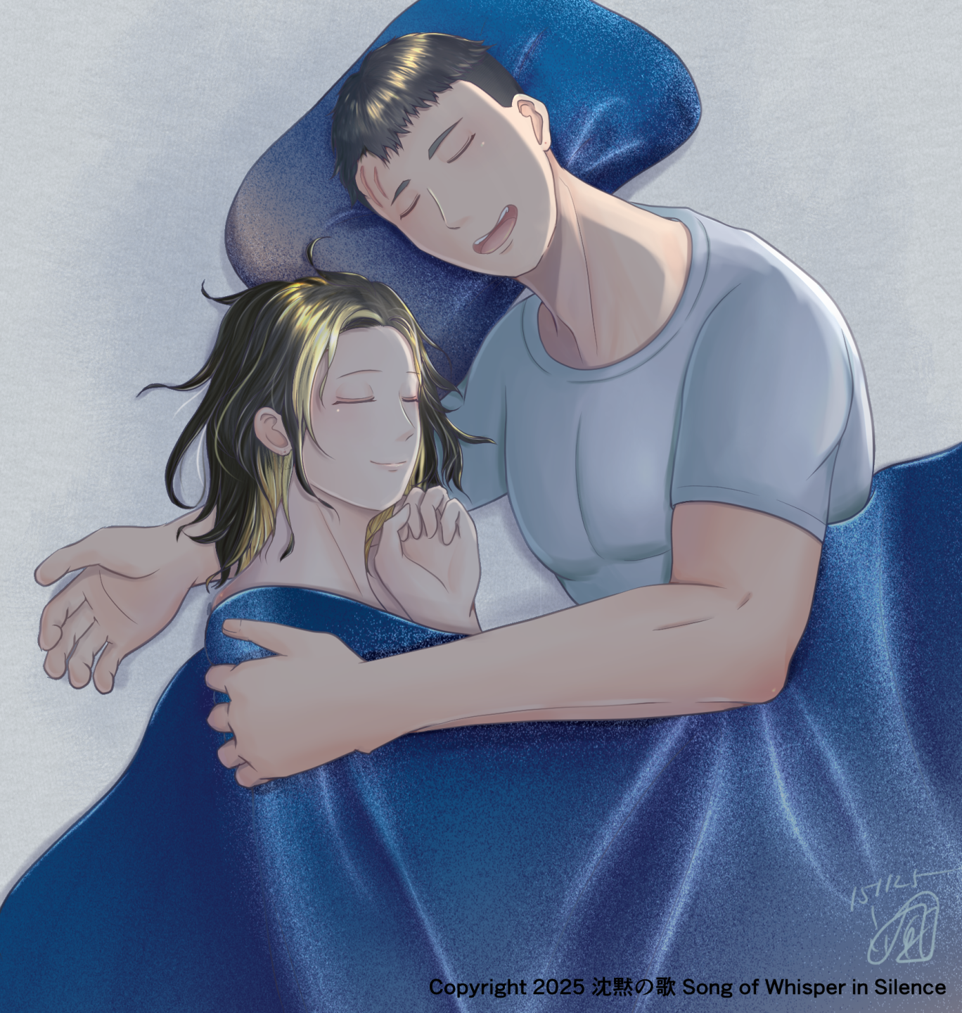 こんな穏やかな日を共に過ごせるとは、数ヶ月前には想像だにしなかったなと胸をじんと熱くさせる新太の目に映るのは、ベッドの上で淡い光を放つ寝具達だ。