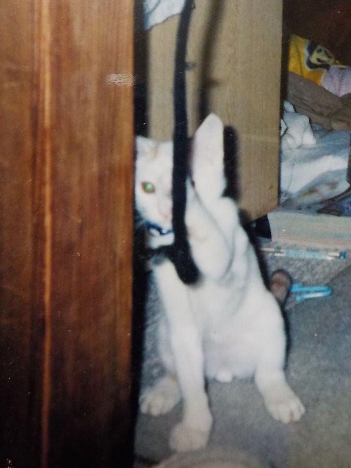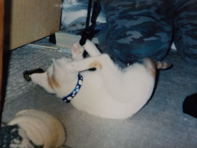 紐をちょろちょろと動かせば、狩猟本能が刺激されたのか、手を使って攻撃、捕まえたらそれを一生懸命噛み付く。離れた隙に紐をちょっと動かせば、それを追って走る。