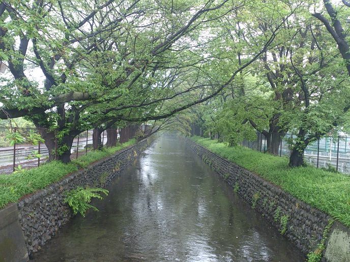 少し肌寒いのでパーカーを羽織り、その中に龍を入れて支え、傘を差して外へ。その時住んでいた家の近くには川があって、犬の散歩コースにもなっており、近くに橋もあった。その橋には鯉が何匹もいて、夏にはホタルが舞い、冬にはシロサギやアオサギ、カモが来るような、自然豊かな川――玉川上水。