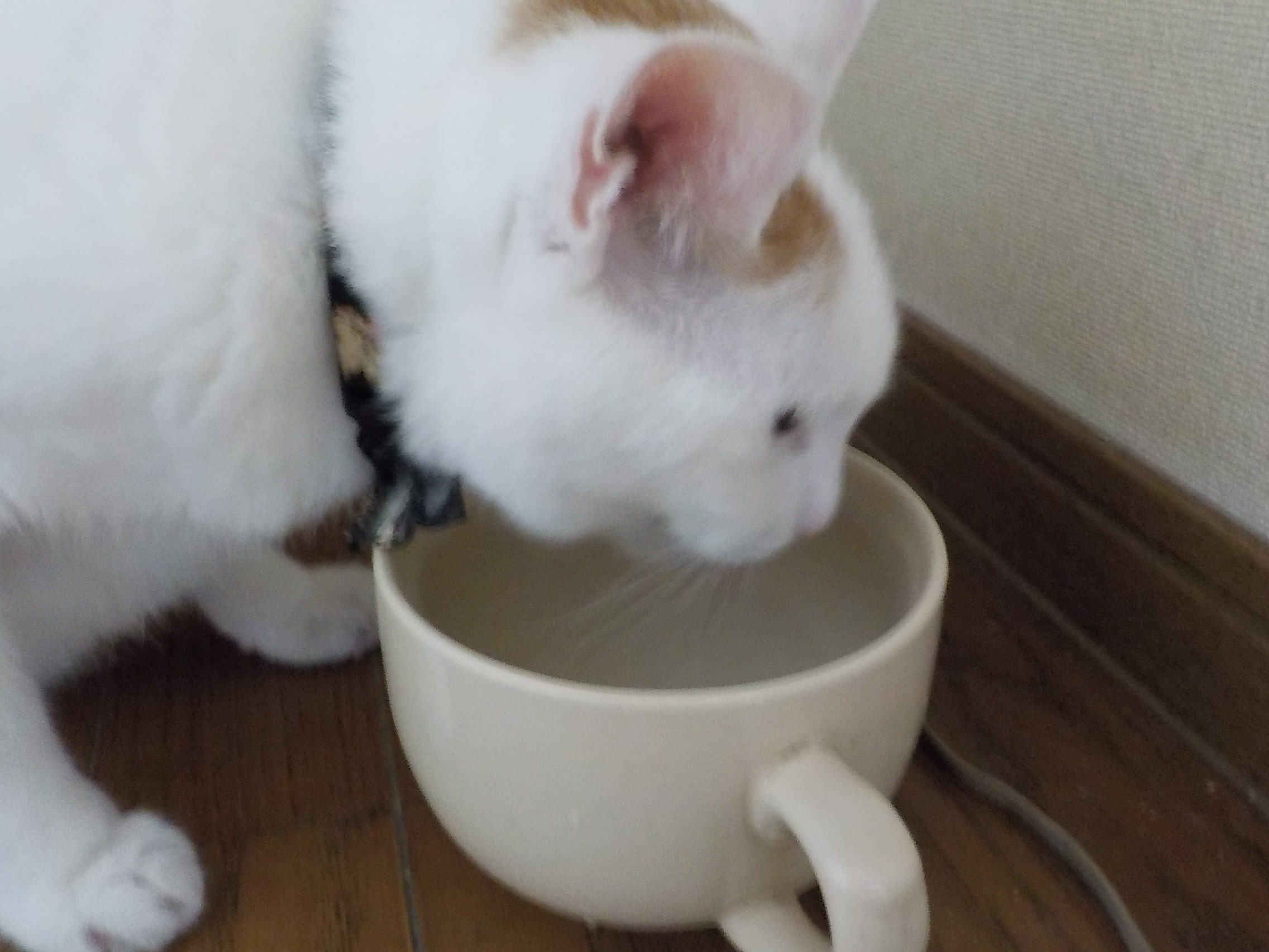 コップに関しては、最初は私が薬を飲むのに用意していたマグカップを興味深そうに見ていたのが始まりのような気がする。くんくんと匂いを嗅いで、徐にカップの中に顔を突っ込むと、そのまま飲み始めてしまったのだから。