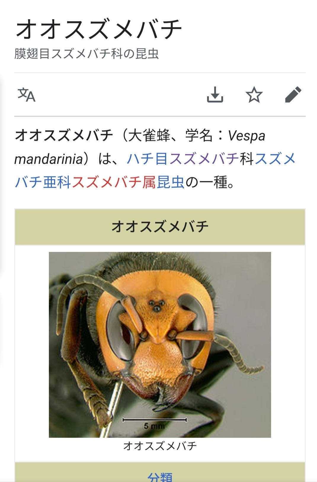 ほらな。やっぱりあれはおおすずめばちやったんて。家に帰ったら証拠写真撮って送ったるわ。
