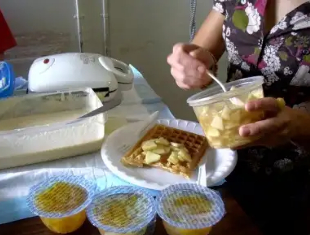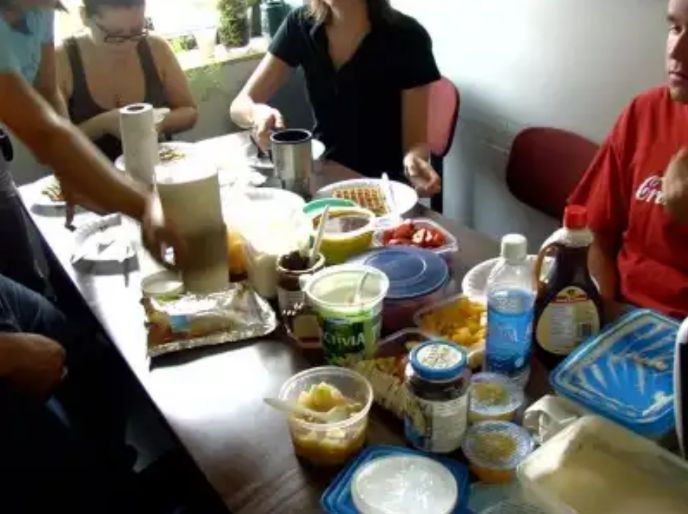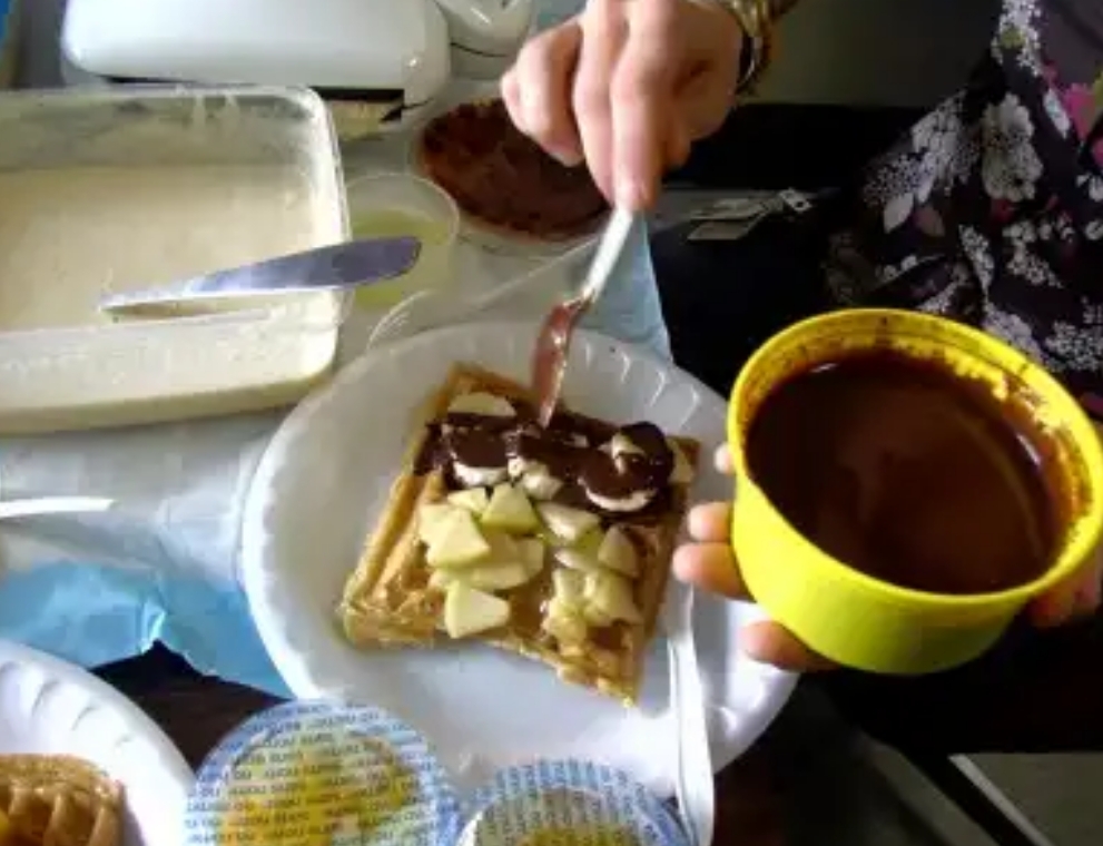私は、ワッフルの上にのせるフルーツをもって来いと言われていたので、適当にカンズメのフルーツを持って行った。しかし、こういう時はみんなで持ち寄ったものをシェアするのが普通らしく、私はしょぼしょぼの缶詰だけで申し訳なかった。