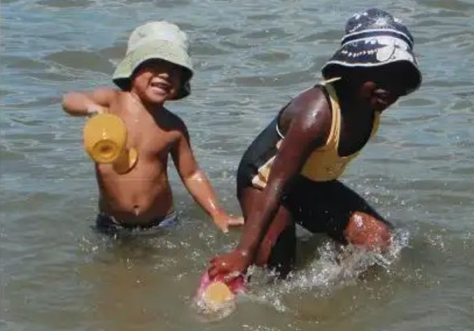 異世界のビーチで子供たちが異世界の人達と遊んで来た