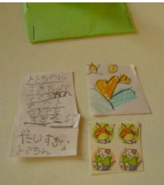 中には手紙だけではなく太陽とハートの絵とシールが入っていました。