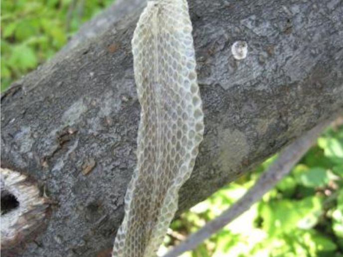 まだ新しい蛇の抜け殻なので近くに蛇がいるでしょう。
