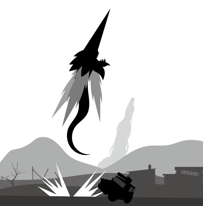 しおりを挟むまるでジェット戦闘機のような轟音を響かせながら宙に撃ち上がった害獣は空中で体勢を立て直し、仕留め損ねた武装車に対しブースターの角度を器用に調整し空中からの突進を敢行!