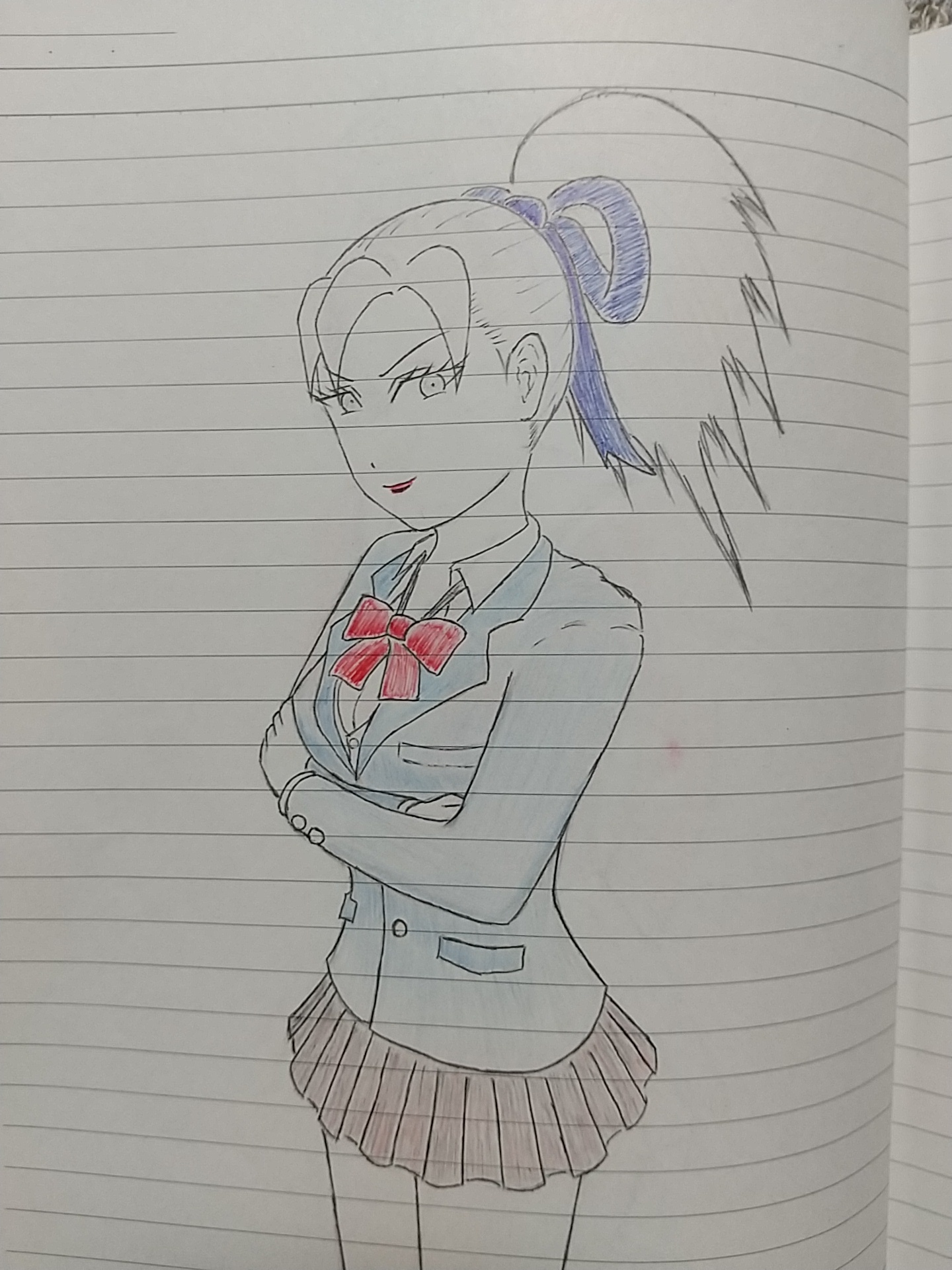 真面目だが強気で、どこか挑発的な笑みを浮かべる青年。
