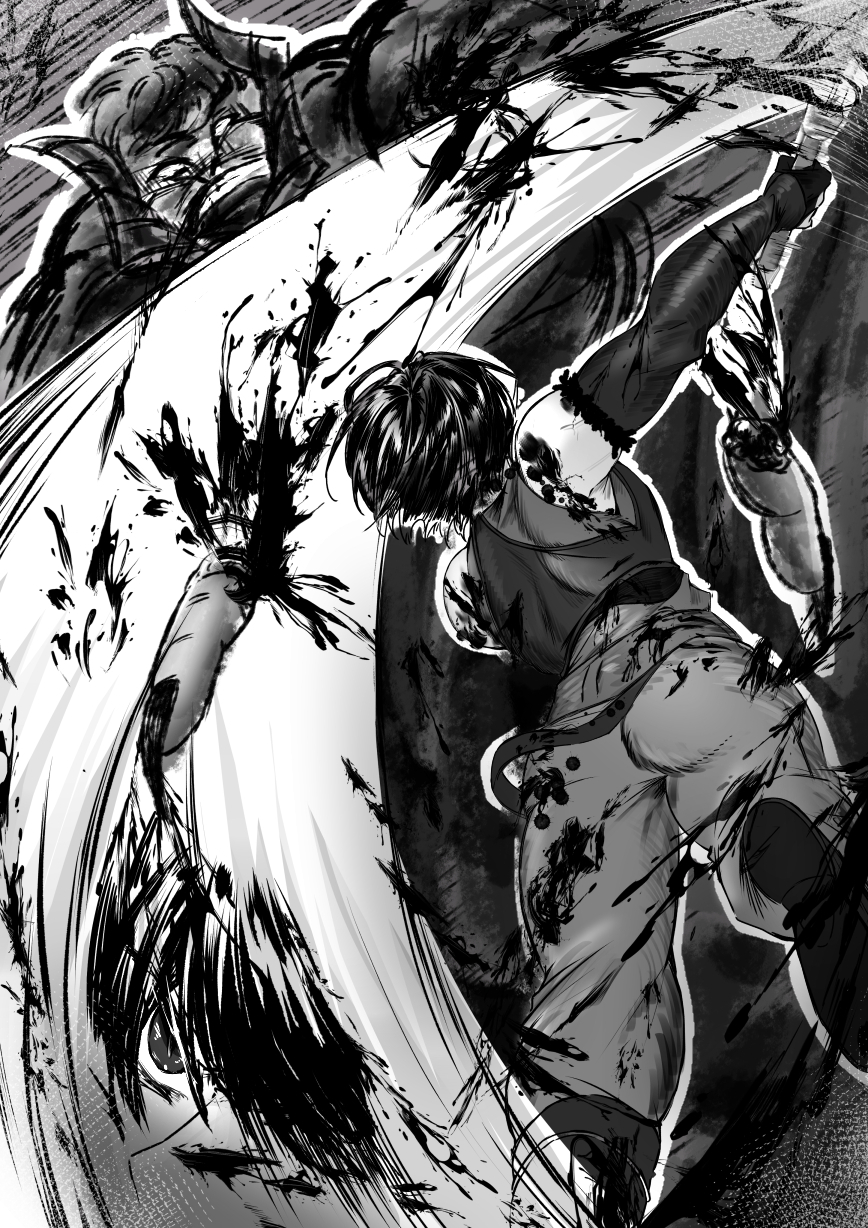 赤い猩々は顔面に爆発を受けて何も見えないはずだが、人の手のような形をした足をセツの方へ振り上げた。セツの剣はその赤い猩々の器用な足に左手ごとつかみ取られ、俺の剣は無視される。