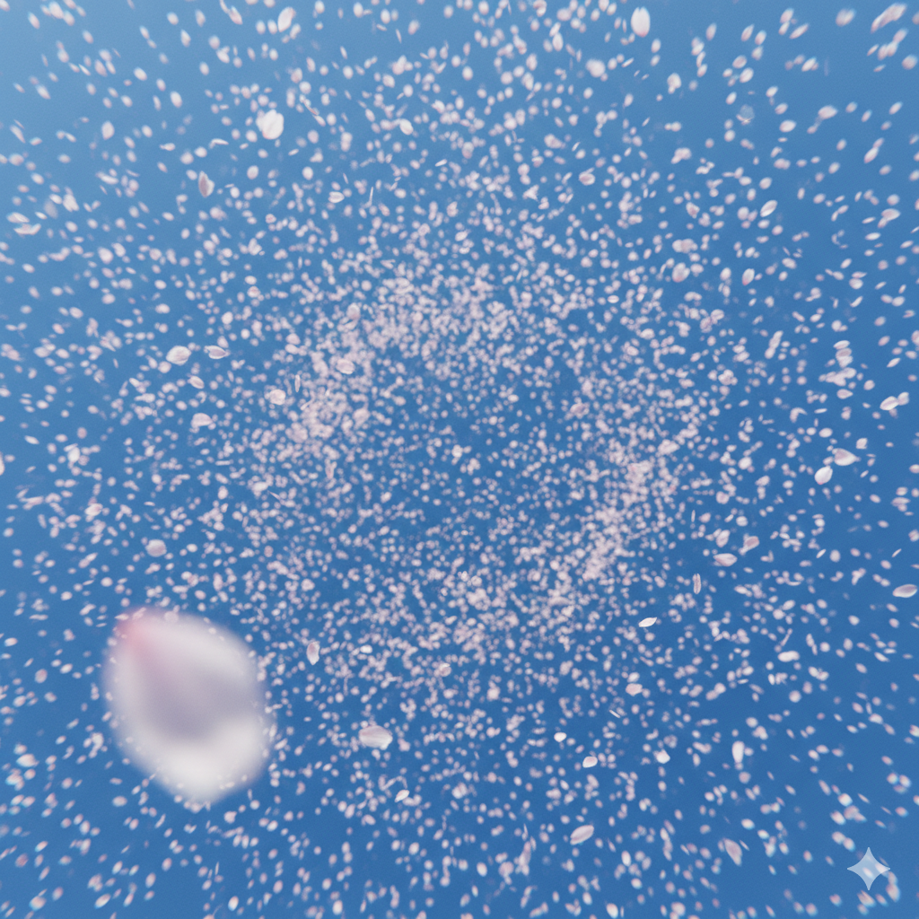 それは本物の花弁と混ざり合い、春の空へと高く、高く舞い上がった。