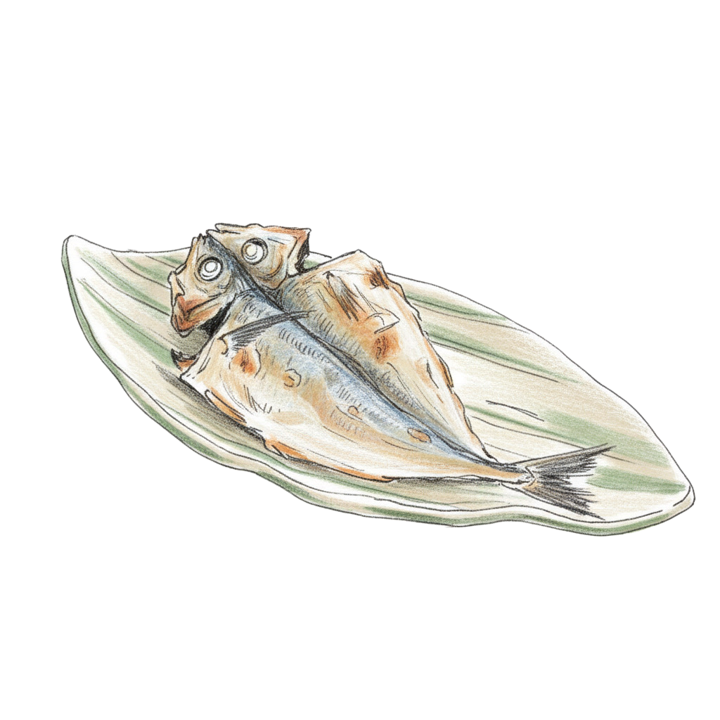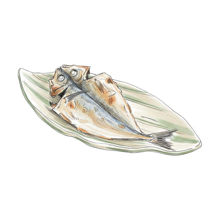 皮目をパリッと焼き上げたアジの干物をテーブルに並べたら、二階で身支度を整えている頃の夫に階段の下から声をかける。