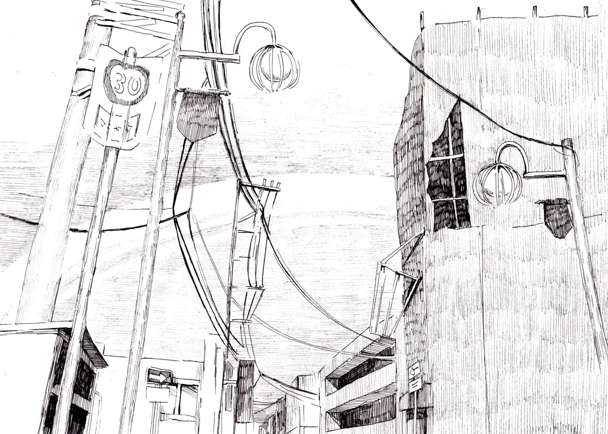 今朝、この道を今とは逆方向に進んでいた。今は帰り道だけど、今朝は行く道だった。今と同じ様に雨が降っていて、今と同じ様に町が水浸しになっていた。