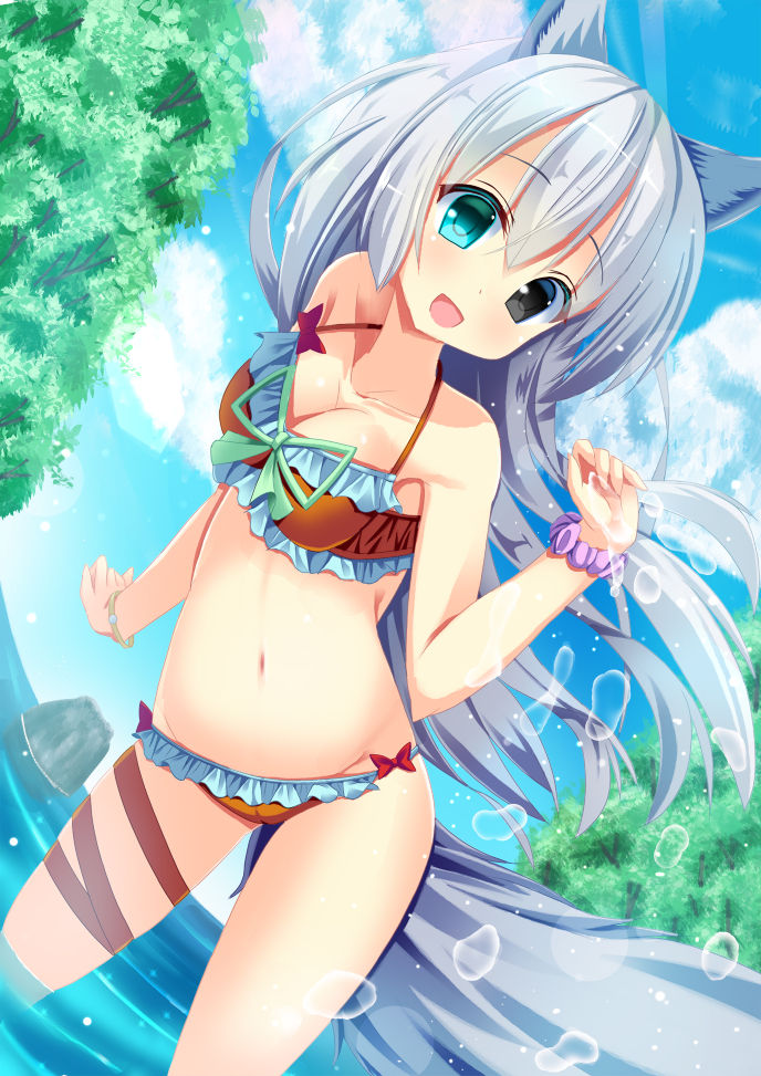 そして忘れてはならないのが、ビキニのボトムの穴からファッサっと出て揺れている尻尾! 狼尻尾!!