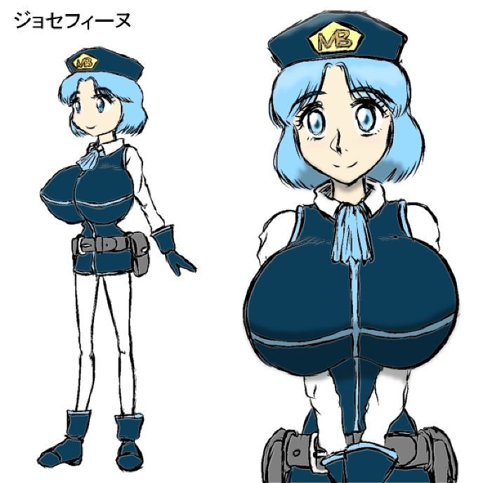 ( そのハンター(リンカ)を見守る受付嬢は名を『ジョセフィーヌ』といい、リンカの担当の受付嬢で、AI(人工知能)だ。 リンカ同様に、身長は160cmほどで巨乳。 スカイブルーのボブヘアで前髪は真ん中わけ。 やや垂れ目でスカイブルーの瞳。 白い襟付きシャツの上に、身体にフィットしたノースリーブのネイビーの制服(ところどころにスカイブルーのラインが入っている)を着て、襟もとにスカイブルーのスカーフを巻いている。 手には手首が隠れるくらいのネイビーの手袋(裾はやや広がっている)をし、腰にはグレーの太めのベルトとその両サイドにグレーのポーチ、下半身は白いタイツ、足には踝(くるぶし)が隠れる程度の短めのブーツ(裾はやや広がっている)、頭にはネイビーの帽子(帽子のツバはないが、中央に五角形の金色のプレートが付いており、プレートには「MB」(モンスターバスター)という文字をかたどったロゴが彫られている)を身に付けている。 )