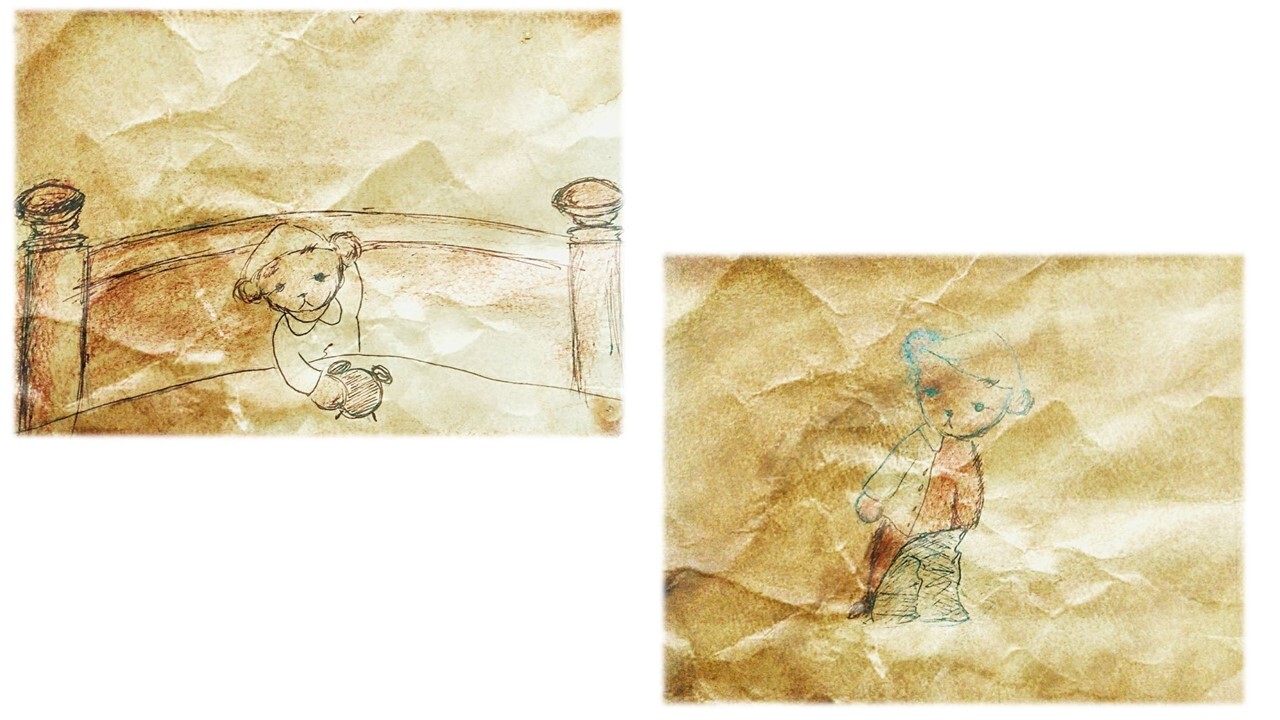テディが1階へ降りていくと昨日の夕刊を読んでいたマスターは、ぶ厚いメガネのグラスの向こうから大きな目をギョロっとさせてテディの全身を舐めるように、じっと見ました。