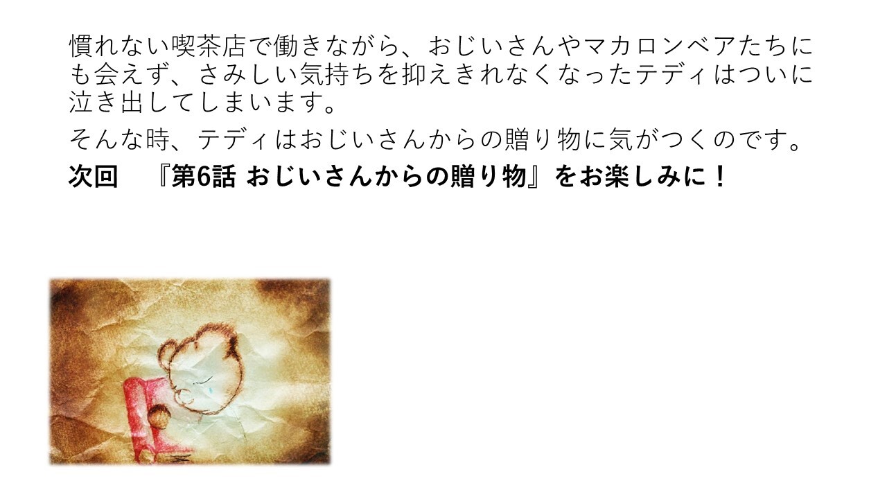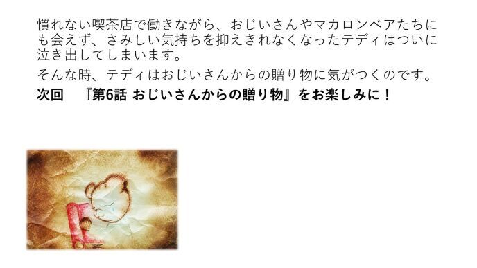 テディは、お仕事を投げ出#__だ__#してマカロンベアたちの待つ家に帰りたい気持ちで、いっぱいでした。