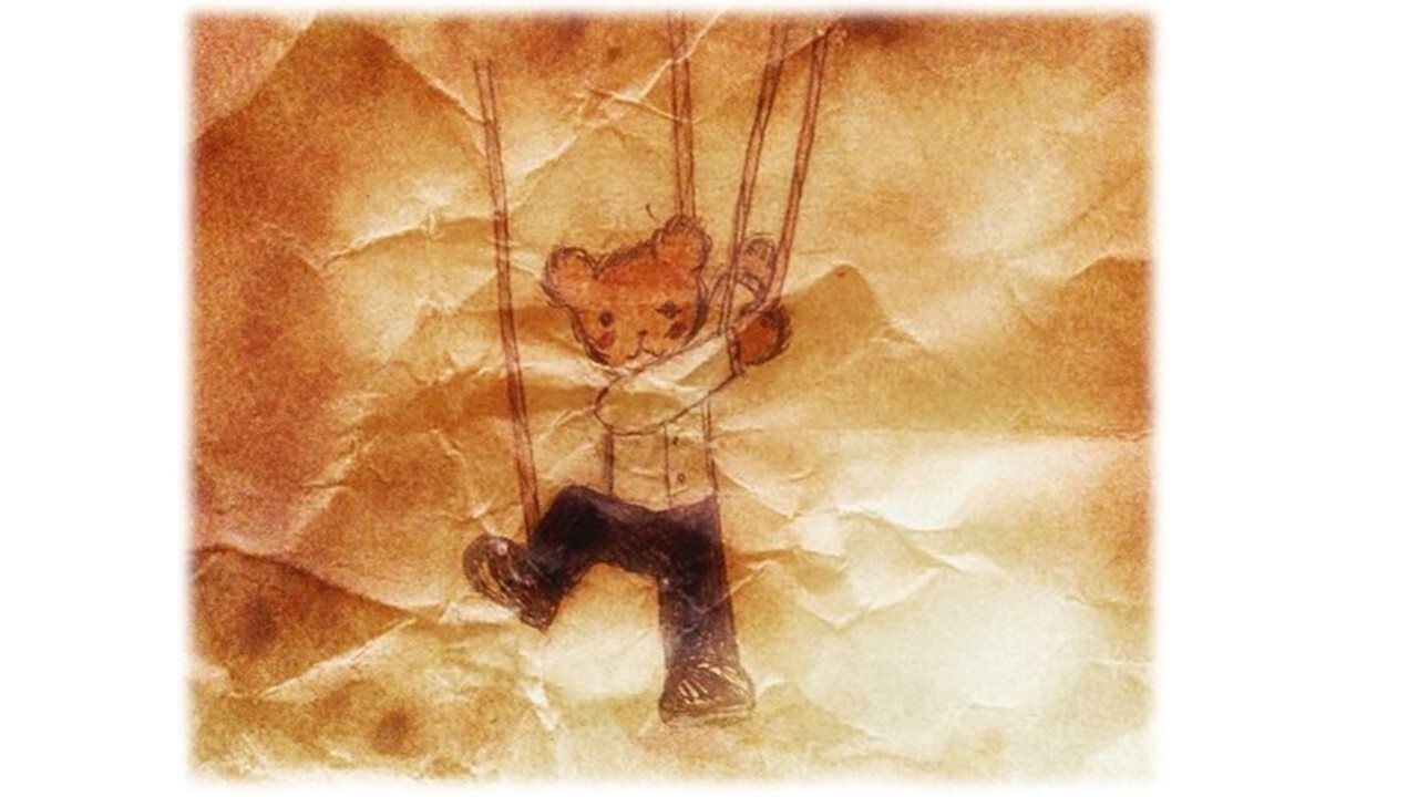 昨日、隠れ家の中でテディに、ロープを付けて操り人形のように躍らせたことを思い出したのです。