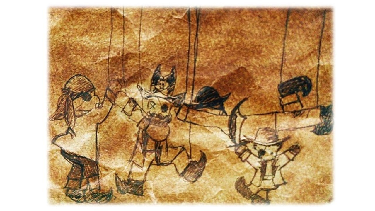 "洞窟の近くに来た時、洞窟の方から人影が見えました“海賊がこっちへ来るのかな?“