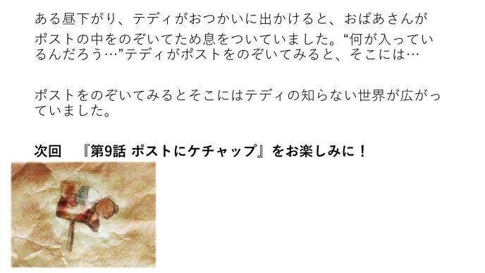 この島に2度と戻って来なかったのは、もちろんのこと、この島に、テディという、話すことができるテディベアがいるということも、誰にも言ことはありませんでした。