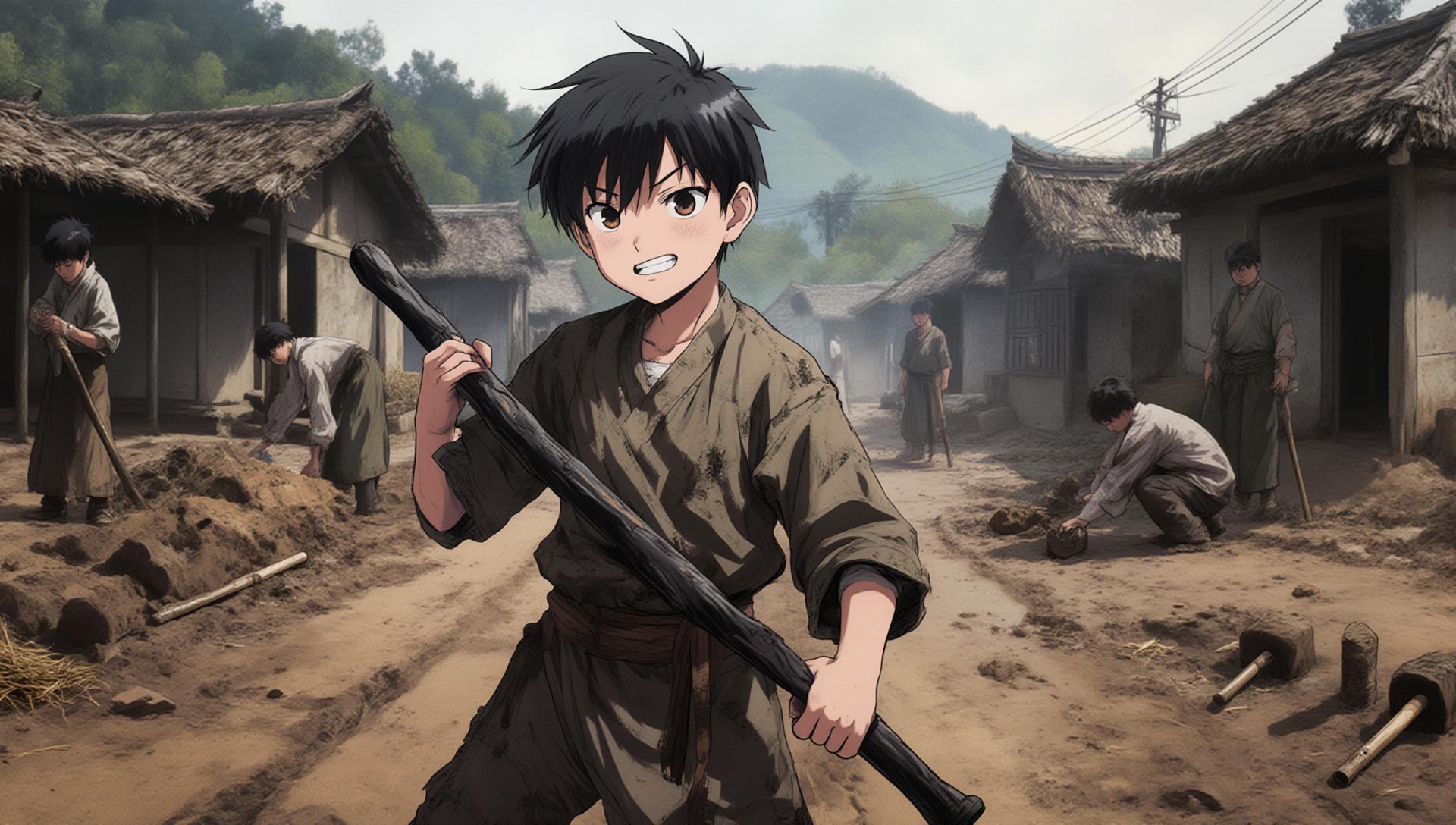 村の⼦供たちを⼦分に従えるガキ⼤将であり、気に⼊らないことがあれば⼤⼈相⼿でも容赦なくその棒を振るう、村⼀番の⿐つまみ者だ。