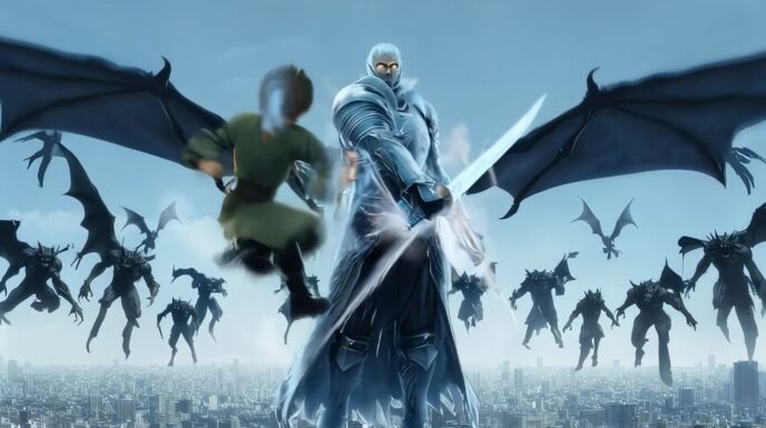 名⼑『⽉光』の冷たい鉄が、都市に点在する数百のガーゴイルたちの急所を、同時多発的に撫でる。