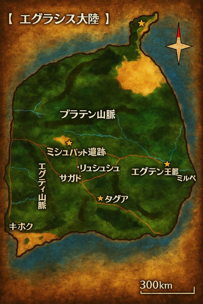 「エグラシス大陸」の概略地図