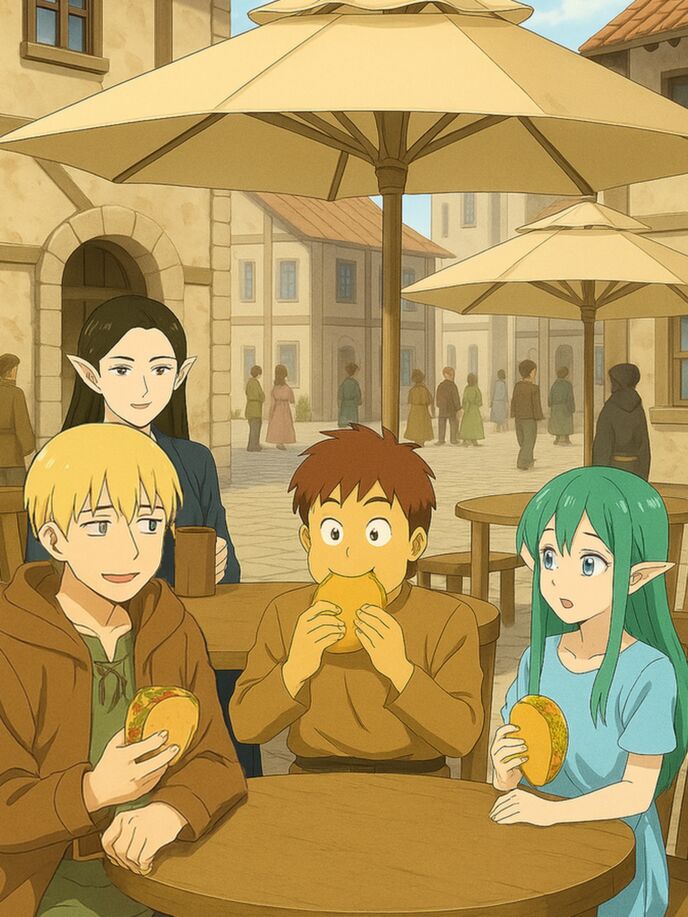 「グレーブ」という名の「ほぼタコス」を大量食いする篤樹。食事代とか、何も考えたことなんか無かった……
