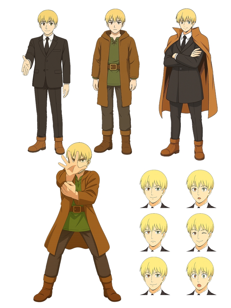 エグデン王国文化法暦省大臣ビデルの側近。大臣補佐官の職に就く優秀な青年行政官であり、突出した魔法術師でもある。「エルフの盾探索隊」の隊長としての特別任務を受け、篤樹達と共に行動する