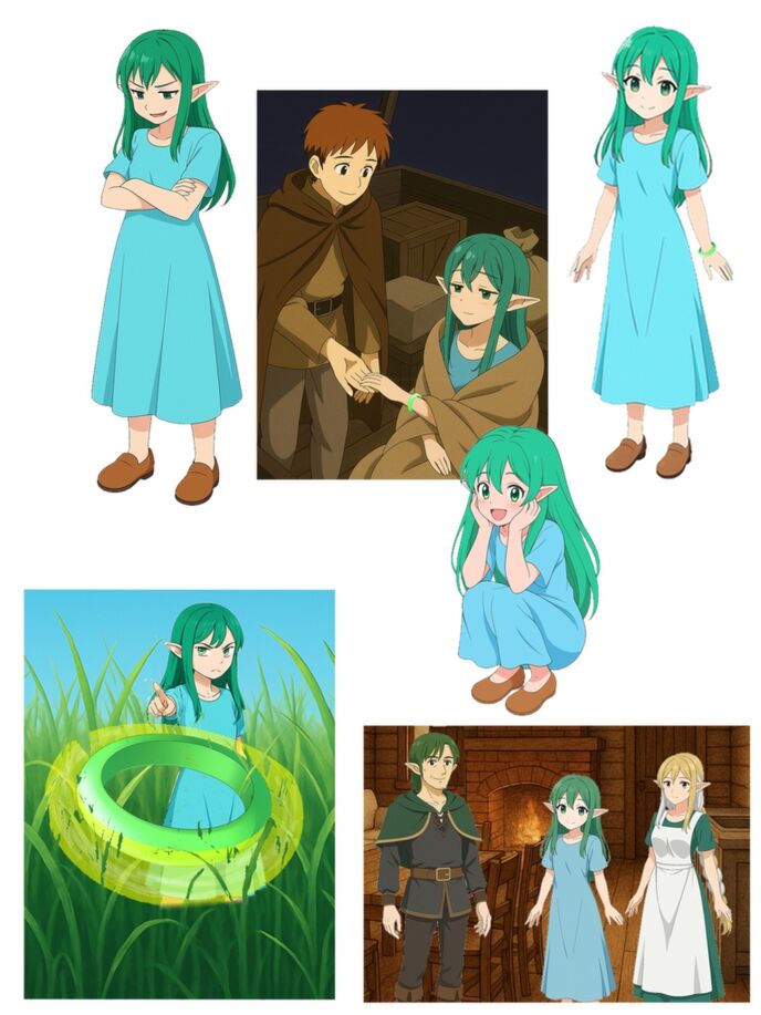 エルフの亜種族「ルエルフ」の少女。篤樹と同年齢。外見特徴と魔法力はエルフ族と近いが、寿命は人間種と同じ。転移して来た篤樹を「最初に見つけた」という繋がりから、極自然に「エルフの盾探索隊」に加わる