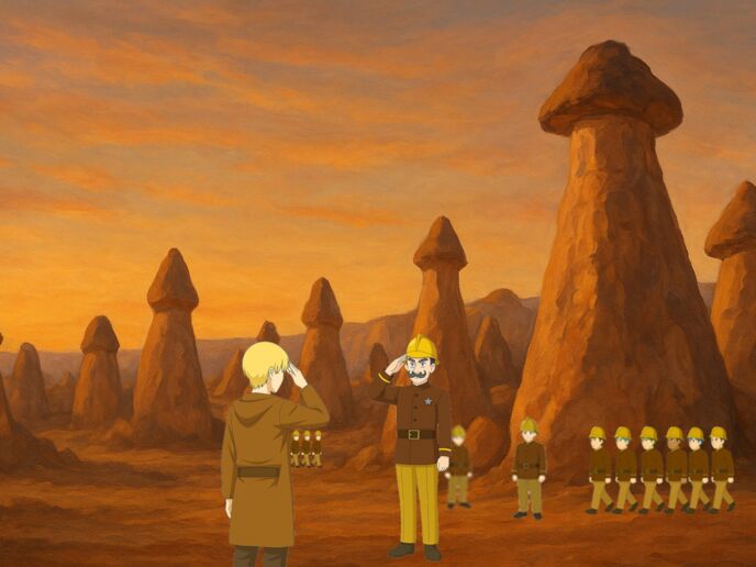 ミシュバット遺跡の異変に気付き駆け付けたエルグレド。軍部のギルバート少尉は訝し気に迎えます。