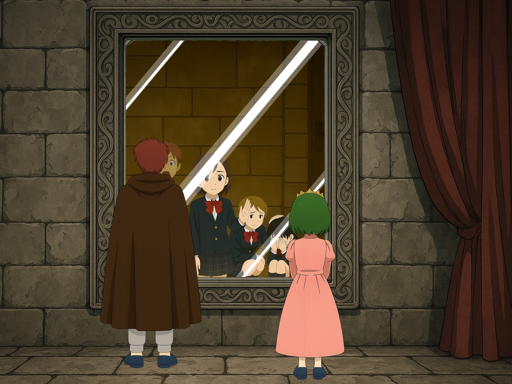 ミシュバット遺跡の地下広間に設置されている水晶鏡には、不思議な魔法術が施されていた……「あ……おい! 俺、俺! 賀川! 渋谷か? 妹尾と氷室も……。お前ら3人でこっちに来たのか?」