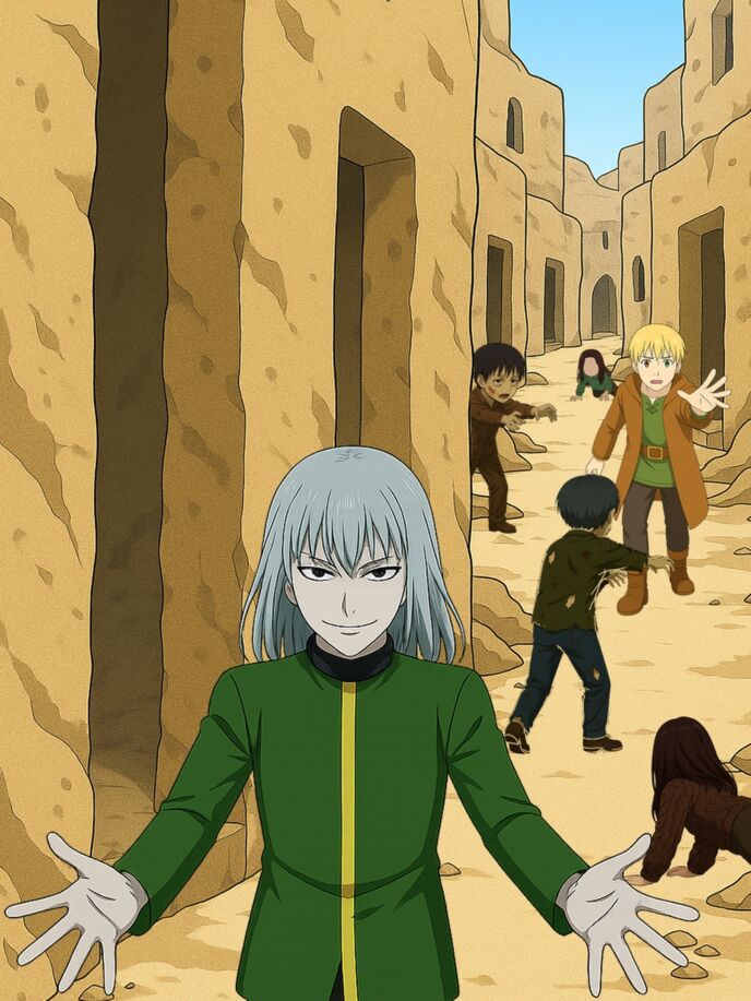 <徘徊する子ども達>を生み出しながら、エルグレドの道を阻み進むタフカ。「タフカ! 答えろ! キミは……『サーガの実』を食べたのか!」