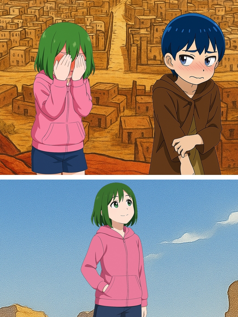 「……さっきの……カガワアツキの記憶……消さなくても良かったんじゃ……」モンマからの伏し目勝ちな意見に、赤面する遥。「ウチの記憶は消さんといて。大事な……修学旅行の思い出や!」