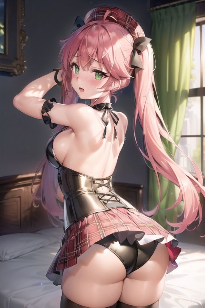照れながらお尻を突き出しパンツが丸見えになったミーコの姿にスッカリ興奮したラデュードは、後ろから彼女を抱きしめた