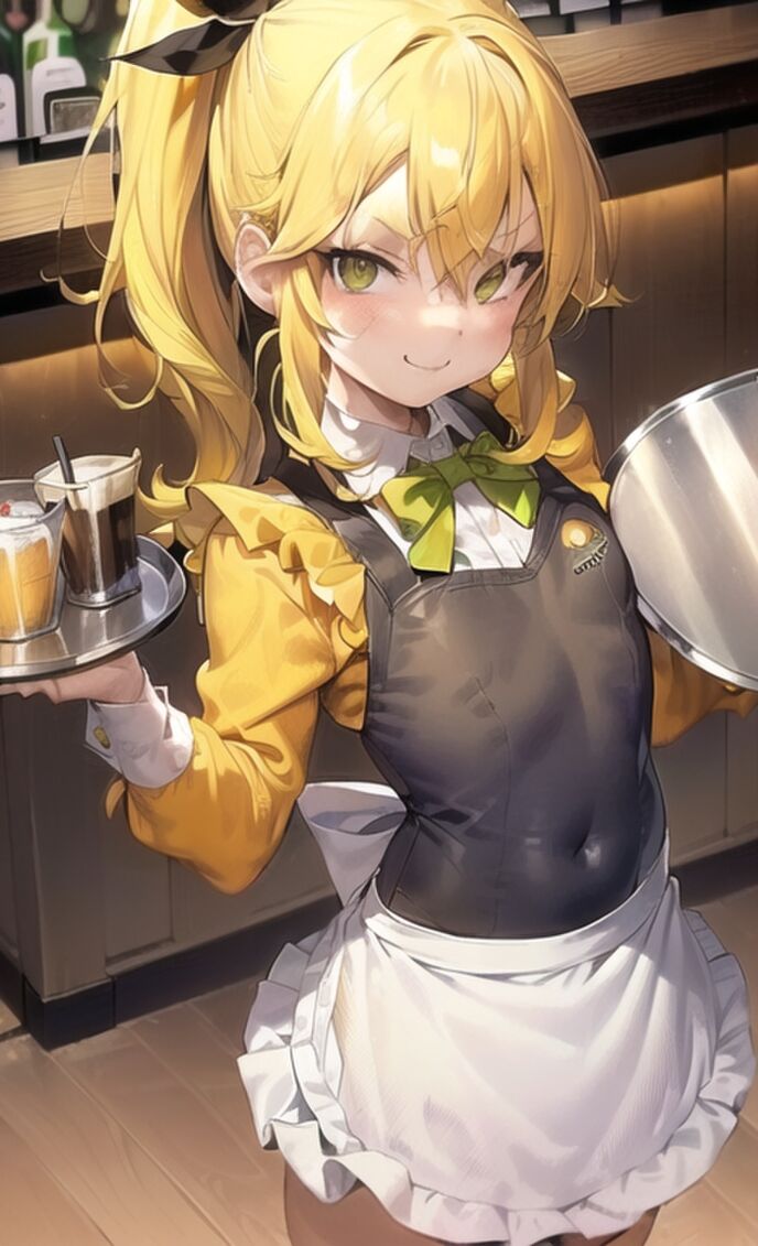 店内に入ったオリビアは心底ビックリした。どう見ても小学の高学年にしか見えない金髪の女の子が、小さなエプロンに隠れるくらいのショートパンツを履いてウェイトレスをしていて、出迎えてくれたのだ