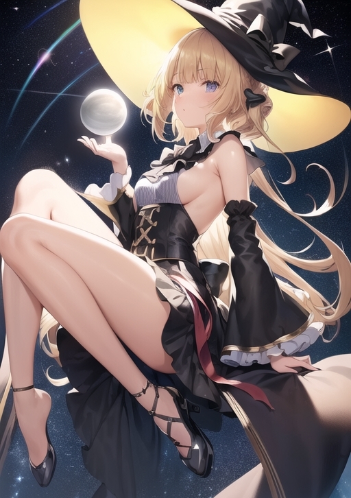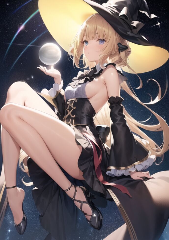 闇夜の中を控え気味に魔法飛行している徳川有栖