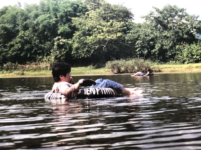 ラオスという日本から遠く離れたアジアの山国、その国の中でもあまり知られていない小さな町で、僕は今タイヤチューブという素朴なものに乗っかって漂っている。